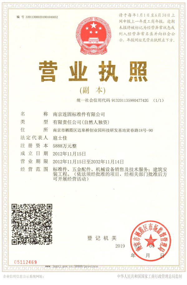 南京連固標(biāo)準(zhǔn)件有限公司,位于南京市棲霞區(qū)靖安鎮(zhèn)長江工業(yè)園,國家大型企業(yè)之一,真正的廠家直銷,價(jià)格實(shí)惠,現(xiàn)貨供應(yīng),庫存量較大,我公司是中國機(jī)械通用零部件協(xié)會(huì)會(huì)員,我公司長期與國內(nèi)外大型企業(yè),重點(diǎn)工程配套。"連固"品牌在國內(nèi)外市場享有良好的聲譽(yù),為了適應(yīng)市場經(jīng)營和自身發(fā)展的需要,我公司專業(yè)生產(chǎn).銷售和批發(fā)碳鋼 .不銹鋼 .合金鋼 .銅.高強(qiáng)度標(biāo)準(zhǔn)件,年生產(chǎn)能力達(dá)8000多噸。碳鋼等級有:4.8級,6.8級,8.8級,10.9級,12.9級。不銹鋼材質(zhì)有201. 202. 304. 316. 316L.904.904L。主要應(yīng)用于機(jī)械設(shè)備,汽車制造. 鐵路.高速鐵路.建筑鋼結(jié)構(gòu)、船舶、貨架,橋梁、道路,風(fēng)力發(fā)電、石油管道等領(lǐng)域。產(chǎn)品質(zhì)量和信譽(yù)得到客戶的一致好評。我公司經(jīng)過十多年來的不斷努力形成了完整的工藝流程,建立了從...